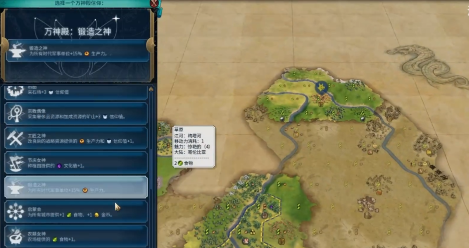 积累到25点信仰时,你就可以创立万神殿,这个步骤通常在游戏开始后的10回合左右完成,如果能锁定染料或烟草等信仰奢侈资源,就能更快达成目标。优先抢到万神殿很重要,因为它能为你奠定基础优势,比如加速文化或科技发展。选择时,你需要考虑自己的整体策