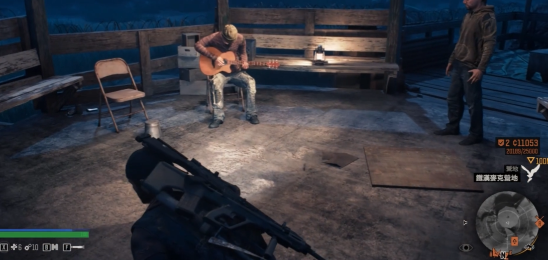 击败营地吉他手是收集吉他曲的关键任务,玩家需要反复击杀他们来解锁全部6首曲子。吉他手只出现在洛斯特湖区域的铁汉麦克营地,具体位置在进入营地正门后的左侧凉亭内,通常在战利品NPC后方活动。他们仅在游戏时间晚上19:00到22:00之间出现,且