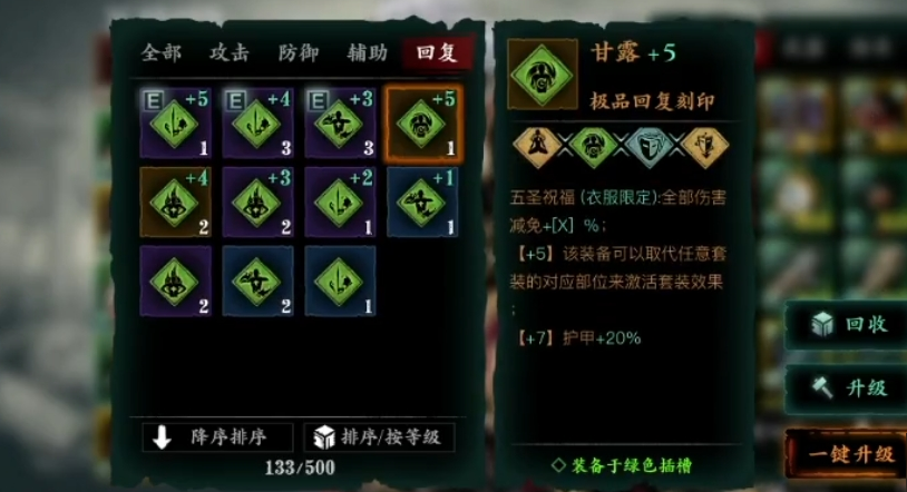 当我们升到60级时,装备的选择和强化变得至关重要,优先考虑带有核心刻印的装备,比如五圣祝福作为通用方案,手套位用玄武刻印套,这样能大幅提升输出效率;装备词条要聚焦在暴击、精英伤害和空爆属性上,如果杀意运转不足,可以适当补充杀意词条来过渡,这