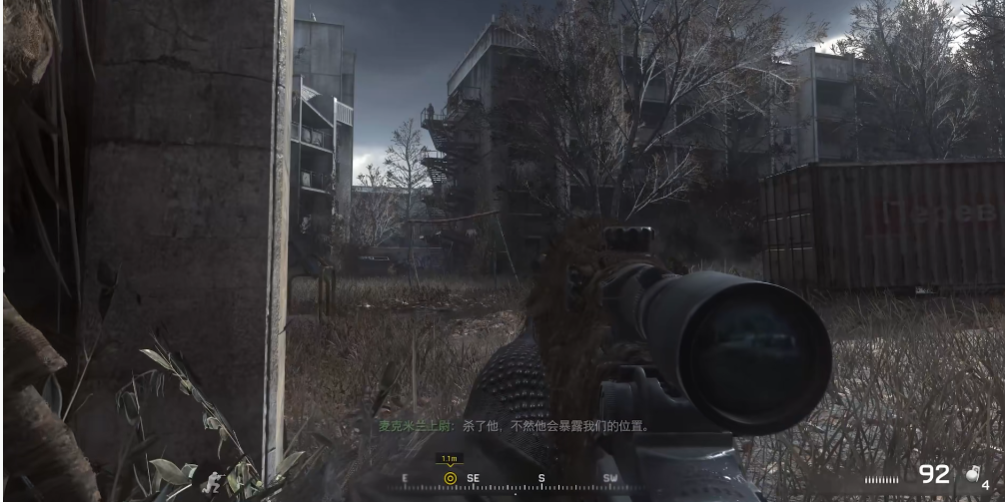 进入狙击任务的前提是完成前置的线性剧情关卡,玩家将扮演索普中士与卡舒塔诺夫上尉搭档,在切尔诺贝利废墟中执行高风险的刺杀行动,该任务分为潜行和狙击两个阶段,核心要求是保持全程隐蔽与精准射击以避免触发警报,任何疏忽都可能导致失败。玩家需优先穿着