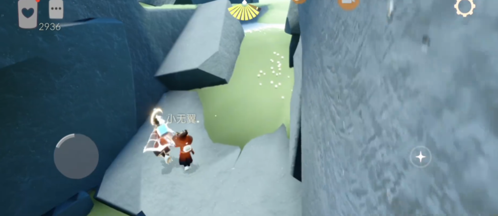 进入云野海底神庙需从云野终点区域的神庙出口出发。具体路径为:完成云野地图探索抵达终点神庙后,面向出口方向向上飞行,注意观察空中两块悬浮的石块。首先降落在第一块石块上短暂停留,将其作为跳板再次起跳至第二块石块。随后向左转向,沿平台边缘飞行进入