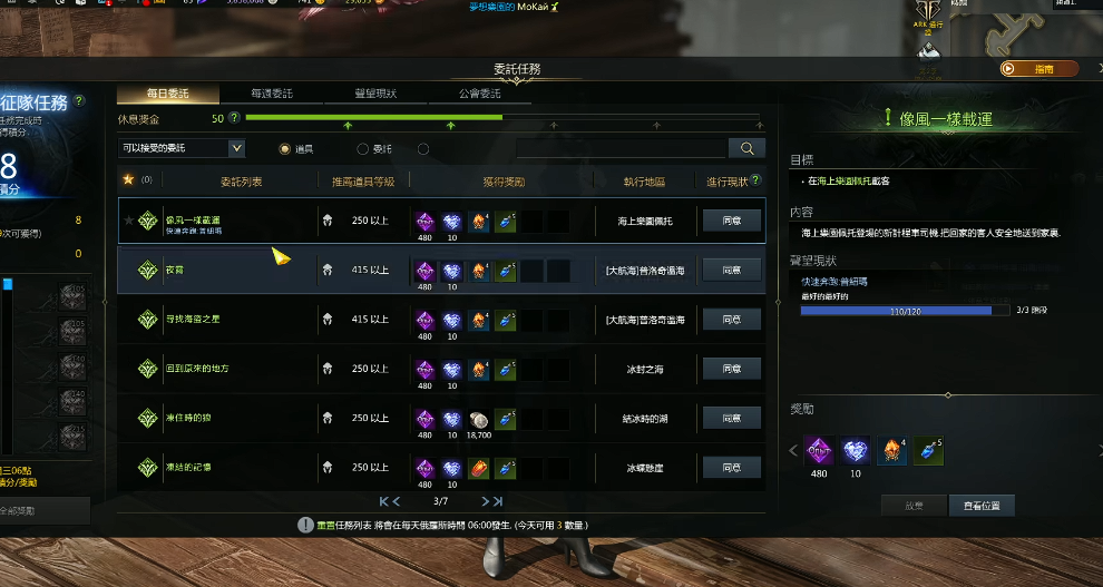像风一样载运任务是失落的方舟中获取普纽玛船只的关键每日任务,需在海上乐园佩托接取并完成三次载客流程。任务要求玩家依次将乘客送至托托克海潮森林、阿比纽俱乐部和乌龟岛三个地点,每次完成可增加10点声望进度,累计满100点即可获得普纽玛。具体路线