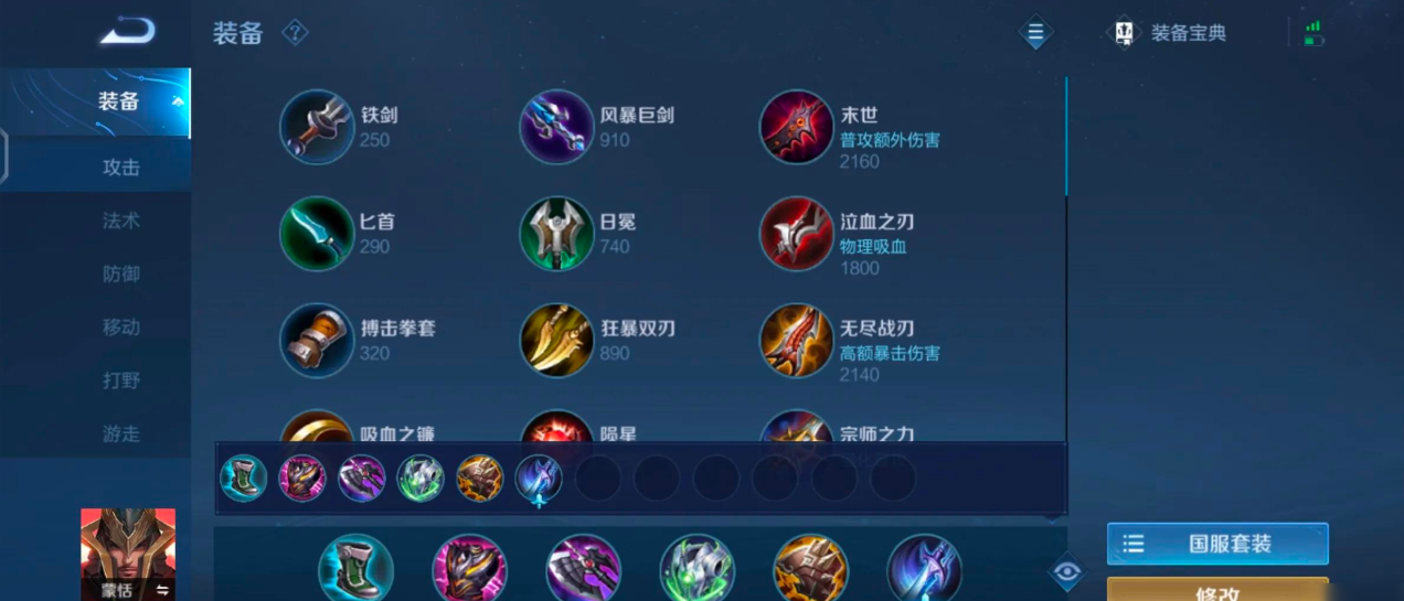 半肉出装是蒙恬最主流的搭配方案,推荐顺序为暗影战斧、影刃之靴、暴烈之甲、宗师之力、魔女斗篷和碎星锤,暗影战斧提供基础物理攻击和冷却缩减,帮助蒙恬在前期快速清线,影刃之靴增强移速支援队友,暴烈之甲则通过被动提升坦度和伤害,尤其在开大后强化群体