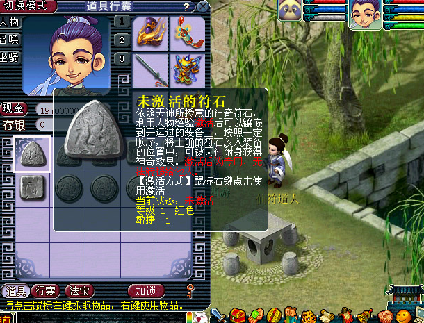 咱们得先准备好三颗一级符石。这些基础的小石头,平时做做活动任务、刷刷副本、跑跑师门任务都有机会拿到,要是着急的话,也可以直接找长安城的宝石商人买几块备着。准备好材料后,就得找到专门负责这事的仙符道人了,他就在长安城溜达,坐标大概是(487,