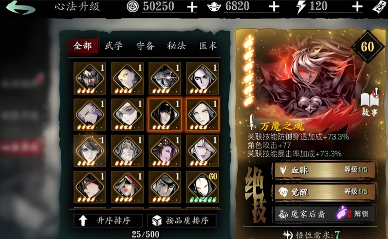 弦者的心法养成关键在于合理搭配羁绊和精准分配资源。魔堡故人、永夜无边、万魔之魂这类T0级心法是必备选择,它们能提供攻击加成或强控效果,魔堡羁绊(魔堡故人+蛇眼+铁诞)还能降低装备套装需求,大幅提升实战容错率。初期优先培养这些通用心法,后期再